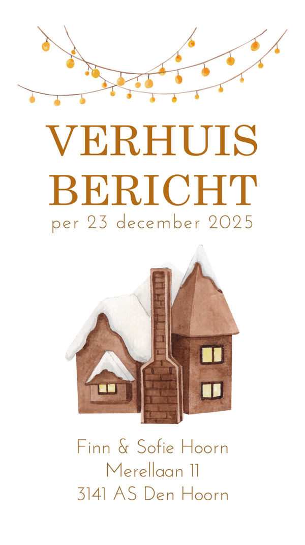 Digitale verhuiskaart: Verhuisbericht Bruine huisjes met sneeuw